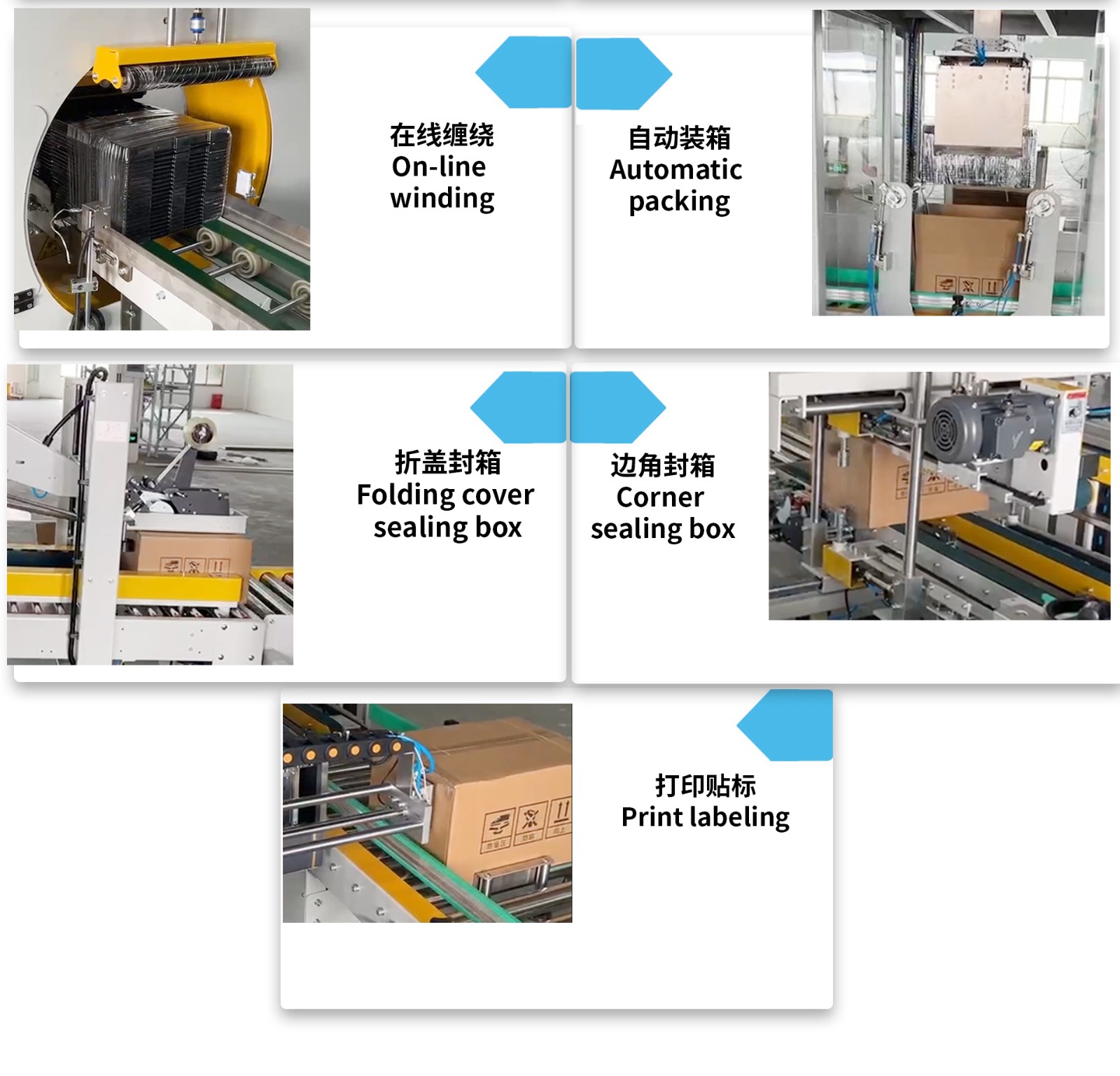 人工上料 掃描+移栽 加空料盒 裹纏繞膜 紙箱封底 料盤裝箱 貼標 加紙板 封箱頂 紙箱四角封膠帶