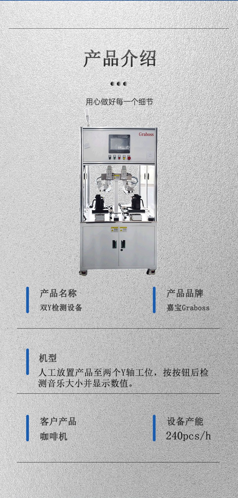 咖啡機音樂聲音檢測,雙Y軸設計可同時檢測兩個產(chǎn)品。